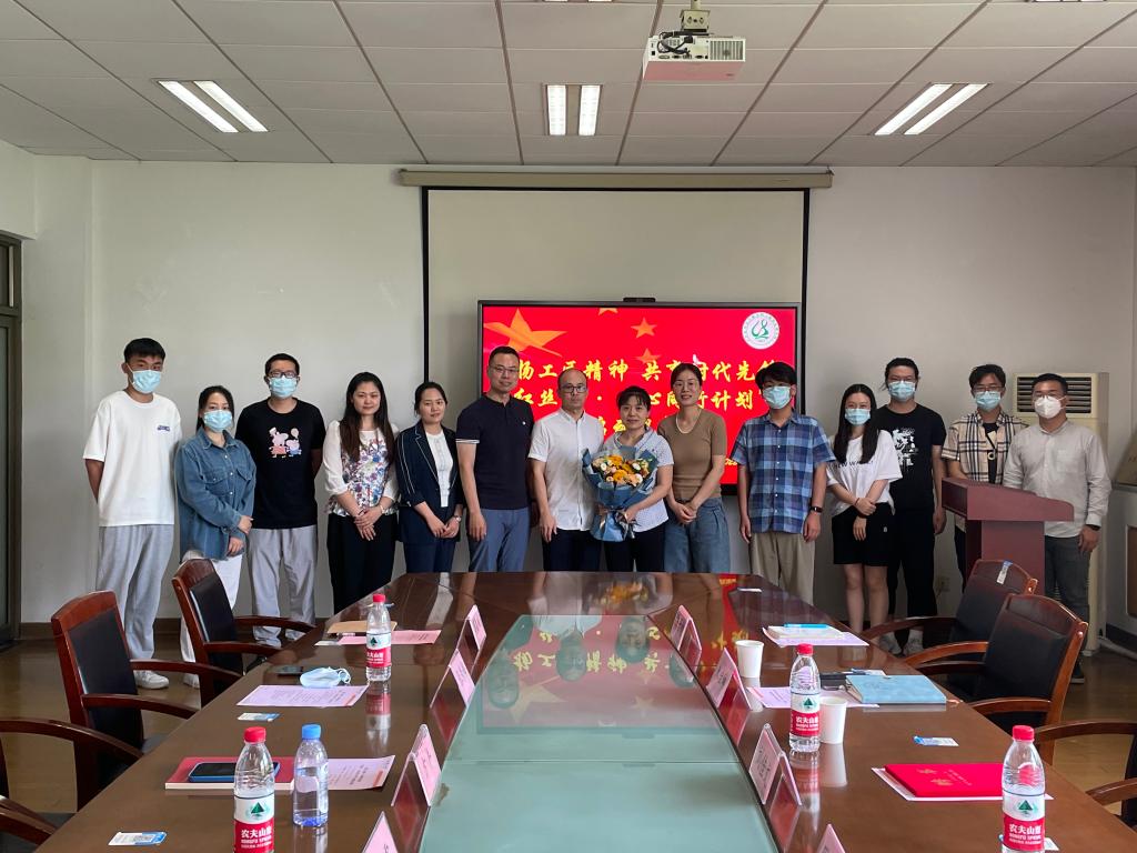 在17号楼312会议室举行“红丝享.同心同行计划”启动仪式,2022年全国五一劳动奖章获得者、学院2009届轻化工程专业校友刘佳文作为首位该计划的校外导师参加仪式。教师代表张秀梅、周益名,学生党员和骨干代表参加本次活动,活动由学院党委副书记方平主持。
