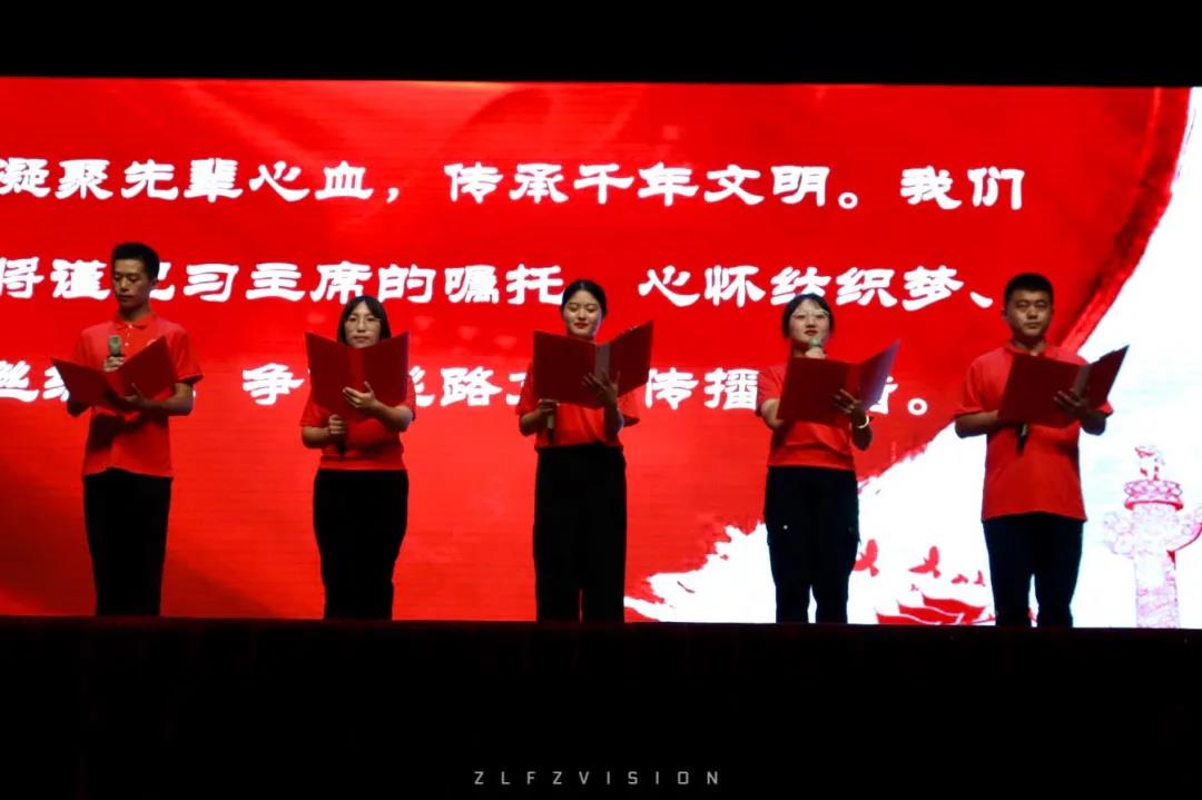 本次新生开学展现着纺织学院“白丝孕新,红丝铭心,绿丝生态,粉丝领航,稻丝醇香,黄丝数智,彩丝飞扬”新生始业教育的“五彩蚕丝”主题文化。以“丝、学、励、信、启”为关键字开启新纺织人大学之旅。而本次开学典礼便突出纺织学院丝绸文化底蕴的“丝”元素。