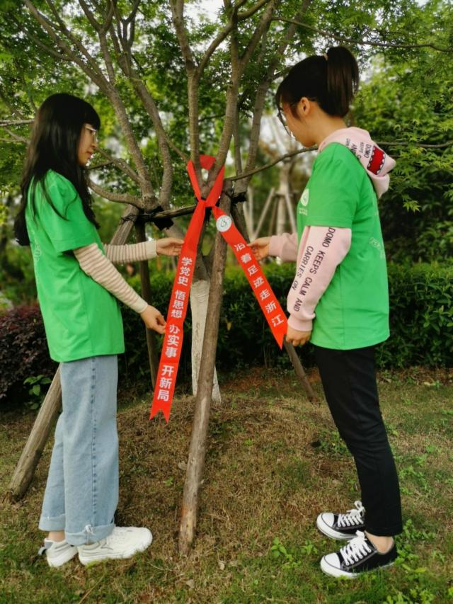 4月4日,学院红色志愿服务团的师生党员代表们前往浙江省温州市瓯海区三垟湿地公园。2005年,一棵由时任浙江省委书记习近平亲自栽下的榕树在温州三垟湿地扎根,如今这棵榕树根深叶茂,绿荫如盖。走近三垟湿地,重温习近平总书记‘进一步发挥浙江的生态优势,创建生态省,打造“绿色浙江”’的战略眼光。红色志愿服务团成员们细细品读了习近平总书记亲植榕树的故事并共同参观了三垟湿地公园,了解了三垟湿地公园从早期作坊环绕、污水遍地的“污水坑”向绿意盎然、生机勃发的“生态园”的转变,在参观中红色志愿服务团成员还亲手将象征着纺织学院“红丝享”党建文化的红丝巾系在了三垟湿地公园的榕树上。坚定信念共同守护生态环境这一最普惠的民生福祉。