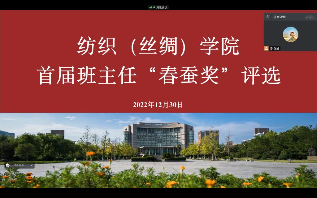 以线上评选的方式举行学院首届班主任“春蚕奖”的评选活动。学院本科生、研究生班主任共15名老师参加此次评选活动,学院党委副书记方平、学院学工办辅导员和部分学生代表参会。