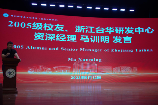 随后,05级校友、台华新材研发中心资深经理马训明结合自己的工作经历,就个人发展问题及未来择业问题向新生分享了自己的经验之谈。