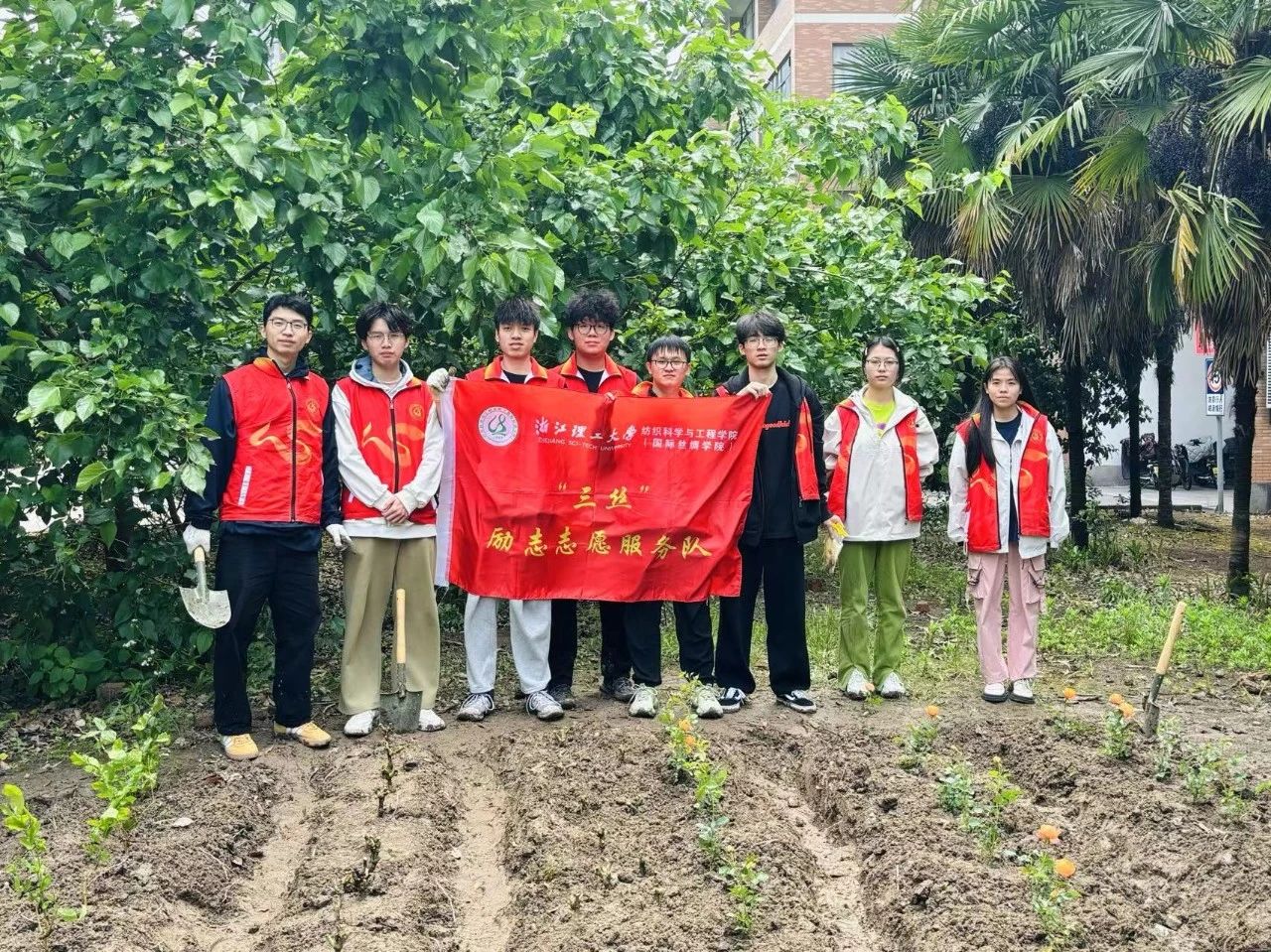 以一园翠色,书写劳动赞歌。学院的“三丝”励志志愿服务队的十位即将毕业的困难生代表及党员同志,齐聚“三丝勤义园”,携手栽下134株寓意深远的花苗,以一种独特的方式铭记大学时光、表达对母校的感激之情,同时也传递着励志与感恩的火种。