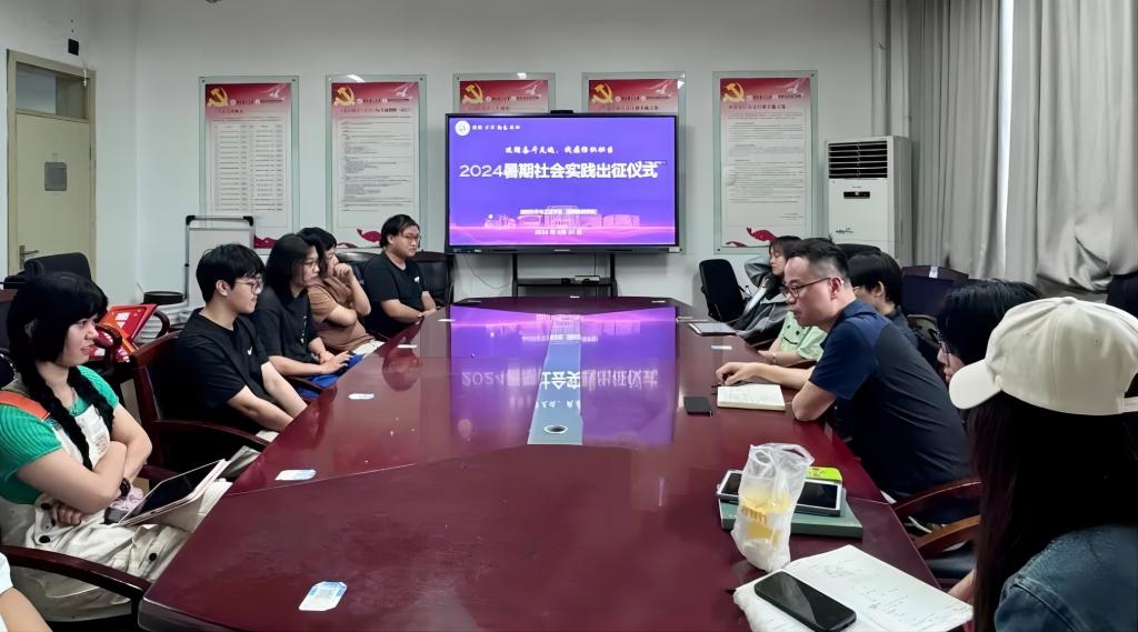 举行2024年暑期社会实践出征仪式。学院党委副书记方平,社会实践指导教师代表张云宇、袁紫琳、胡万里出席,参与会议的还有暑期实践各团队负责人和成员代表。