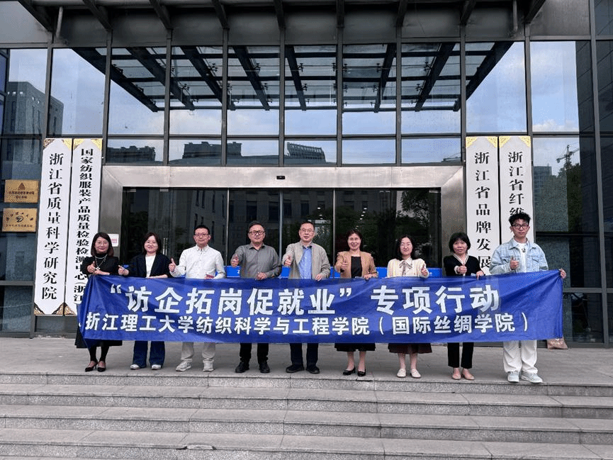 院长于斌、党委副书记张孝凤及研究生就业辅导员一行前往浙江省质量科学研究院数字技术和新材料检测研究中心调研交流。浙江省质量科学研究院副院长、数字和新材料检测中心主任林磊,副主任楼才英、卢鸯,现代纺织检测研究所副所长张惠芳,新材料和绿色健康检测研究所副所长周学军以及校友代表刘芙蓉等参加座谈。