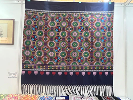 研修项目负责人祝成炎教授向参观展览的领导嘉宾介绍了本次参展作品,浙江理工大学麻豆 在纺织非遗传承和保护方面所做的工作,以及研修班学员在完成研修班学习之后在技艺和产品创新中所取得的成果。自2017年以来,浙江理工大学围绕织锦技艺传承及创意设计,根据文旅部“强基础、增学养、拓眼界”的研修原则,从织锦行业的发展需要和非遗项目的从业人员成长需求,确保研修质量与效果。在浙江省文旅厅的大力支持和精心指导下,“织锦非遗研修”团队围绕“织锦技艺传承及创意”,开展了一系列调研与研修工作。已成功承办了9期“织锦技艺传承及创意设计研修班”,相继为浙江、江苏、四川、广西、云南、海南、山东、贵州、湖南、河南等地的四川蜀锦、南京云锦、苏州宋锦、广西壮锦、杭州织锦、山东鲁锦、海南黎锦、云南傣锦、苏州缂丝、布依族织锦、水族马尾绣、苗族蜡染、布依族枫香染、蓝染蓝印、桐乡濮绸、杭州丝绸画缋等非遗项目180余位传承人或从业者提供了针对性的高级研修。