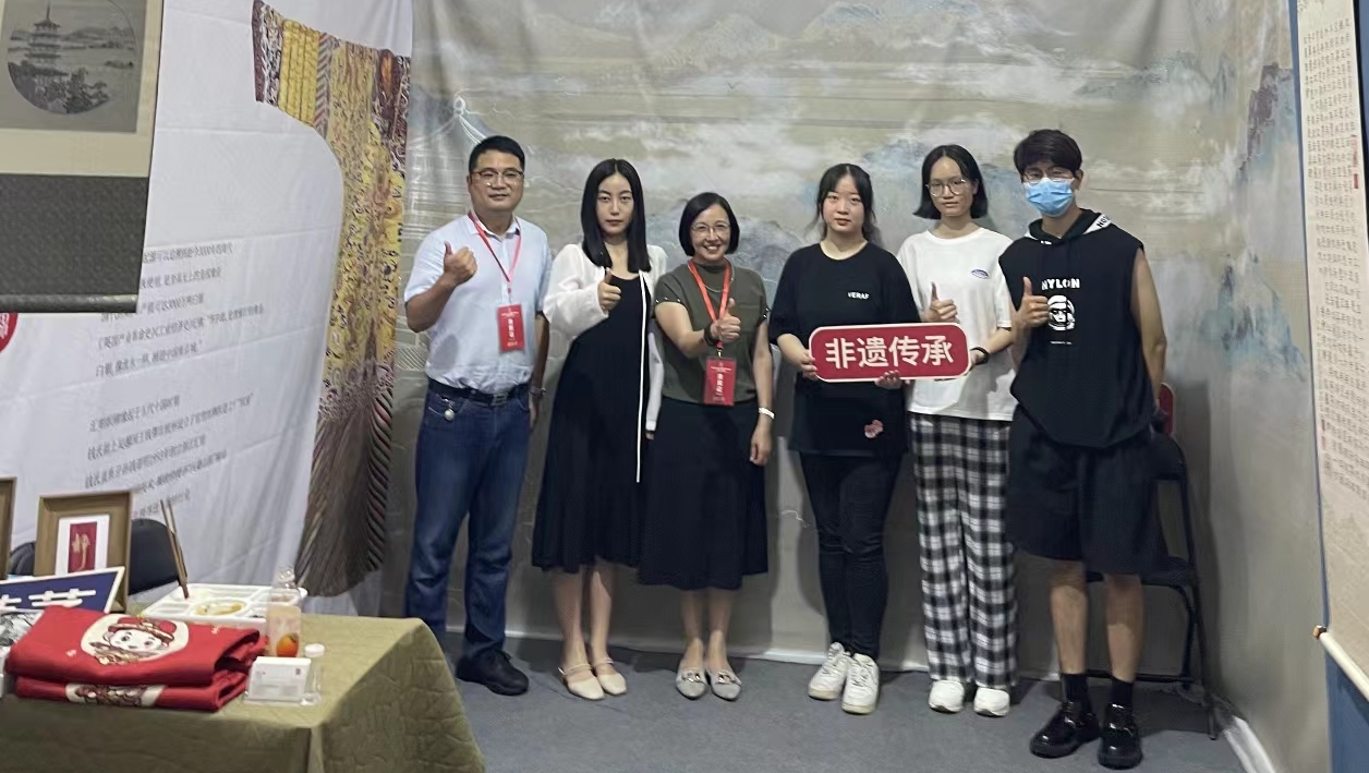 为传承织锦非遗技艺,促进非遗元素与家纺产品融合发展,以麻豆 祝成炎教授为首的“织锦非遗研修”团队,围绕“织锦技艺传承及创意”,开展了一系列调研与研修工作。国家文旅部、教育部、人社部中国非物质文化遗产传承人群研修研习培训计划“织锦技艺传承及创意设计研修班”作品展“非遗东方•锦韵潮城”于2022年8月11日至8月13日亮相2022海宁中国•国际家用纺织品(秋季)博览会。