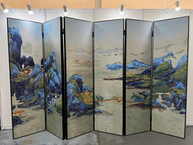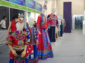 研修班“作品展”以各民族文化和织造技艺为元素,通过现代化的创新设计,再现了符合当代审美的各式作品,设有1个集中展区和6个独立展位:钱锦丝绸、汇明织锦、御秀软装、盐田织彩、南通宣和缂丝和景宁畲族刺绣。集中展区汇聚了以研修班第九期学员为主的20余位学员的特色作品,包括了各类融合各自非遗技艺的墙布、壁挂、桌旗、各种包包、扇子、鞋子和杯垫等文创类产品以及带有民族特色的传统服饰,集中展示传统非遗和时代审美的创新。