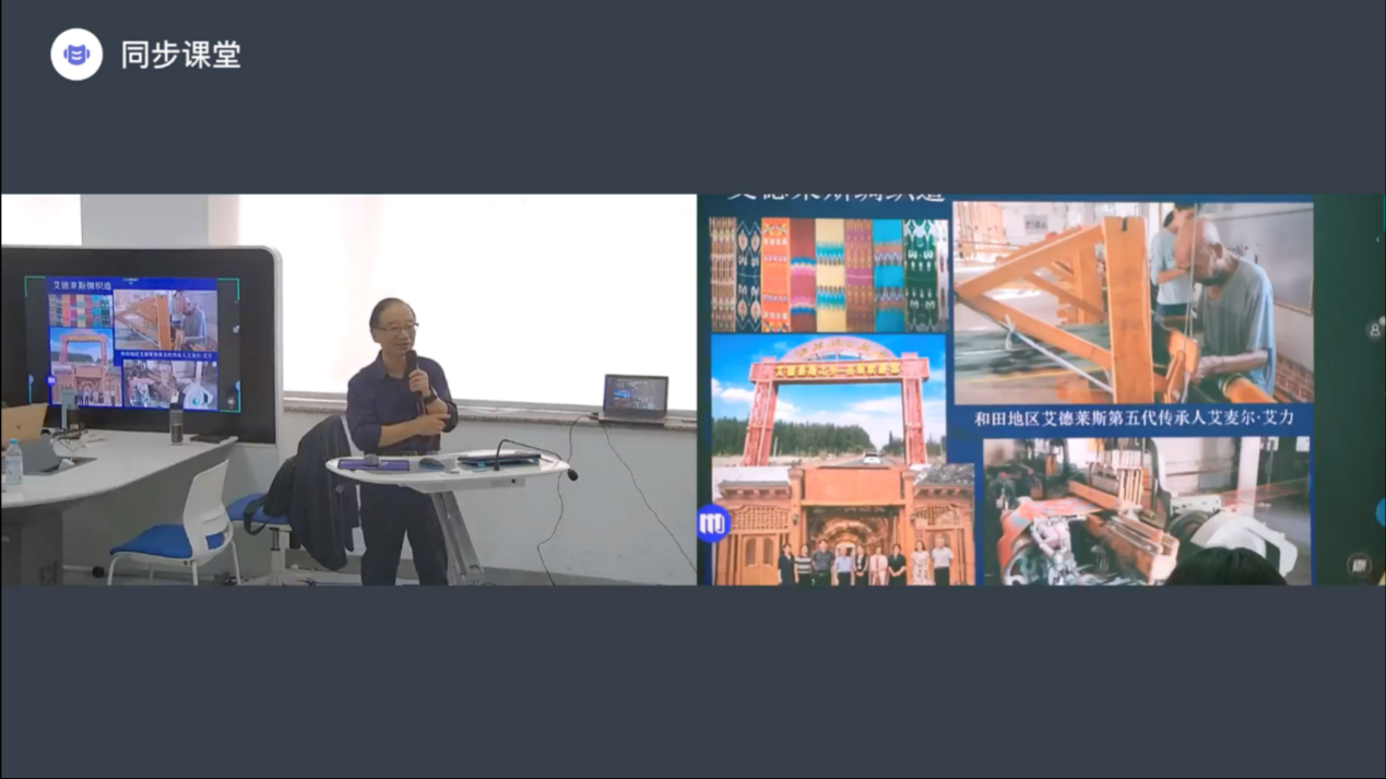 纺织工程国家级一流本科专业建设点负责人、浙江省教学名师祝成炎教授主讲。祝成炎教授深入浅出地为同学们介绍了织造工程的基本概念、织机主要机构、织机类型以及织造的历史现状与发展等内容,通过加入丰富的图片和视频资源,授课内容更加生动有趣。同时,还将中国传统的黎锦和艾特莱斯丝绸的织造以及使用大提花织机织造千里江山图等思政元素穿插其中,使同学们在学习专业知识的同时也感受到了中华传统文化的传承与发展。