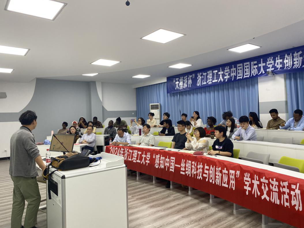 期间,邢孟秋院士给师生作了精彩的学术报告,该报告同时是国家留学基金委主办的“2024感知中国—丝绸科技与创新应用”学术交流活动的重要环节。报告会在2-S343智慧教室举行,由纺织科学与工程学院院长于斌教授主持。麻豆