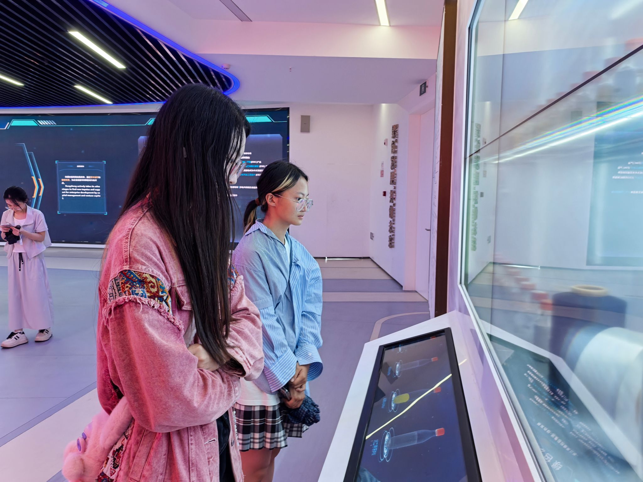 学院师生一行首先走进荣盛控股旗下盛元化纤的自动化生产车间,实地观摩了智能化设备贯穿原料投放、生产加工到成品包装的全链条环节生产流程。随后,师生们前往集团展厅,通过详实的展板、生动的视频及工作人员的讲解,详细了解集团的发展历程、产业架构以及绿色发展等实践成果。