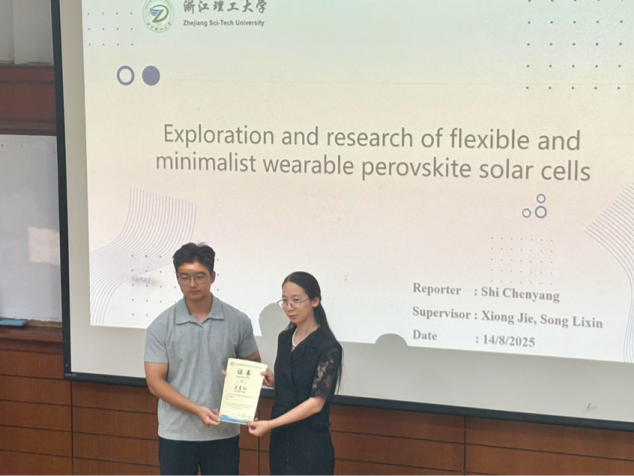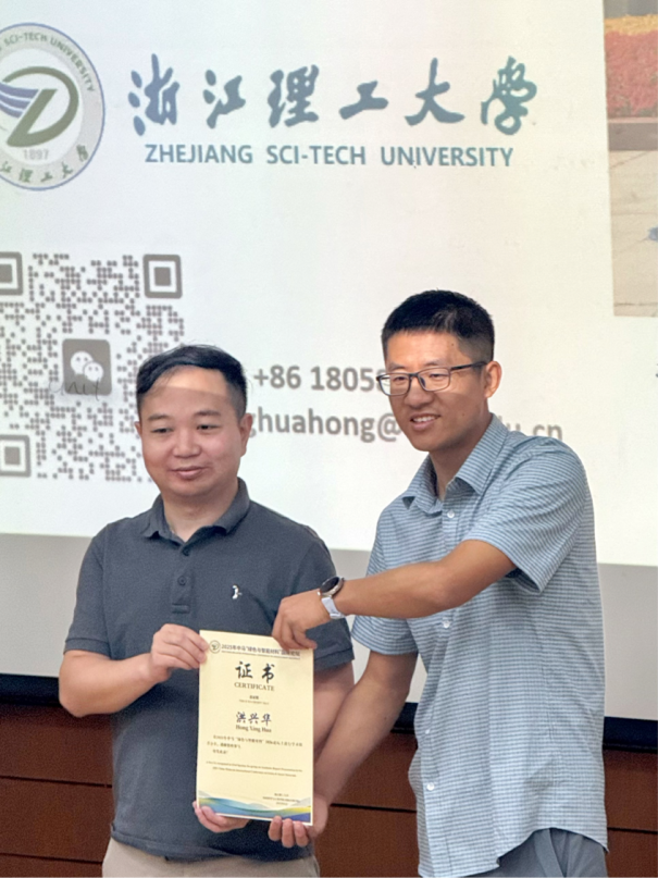 开幕式后,先行举行的教师报告彰显科研高度,体现前沿之声。南洋理工大学的Ronghui Wu博士以及浙江理工大学的朱斐超、洪兴华、翟世民博士分别从智能纺织品、生物基聚乳酸熔喷非织造材料、有机热电材料、生物炭结构调控等方面做了精彩分享报告。教师报告后,多位研究生分别围绕聚氨酯多孔纤维、柔性可穿戴能源、新型双核有机硼催化剂等方面展开精彩成果汇报,展现了青年力量在国际舞台上的闪耀。与会代表热情交流,充分表达了对本次交流论坛的认可。