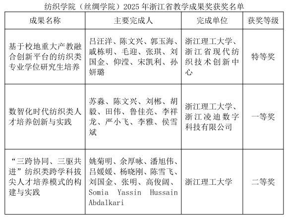 近日,浙江省教育厅依据《浙江省人民政府关于表彰2025年浙江省教书育人杰出贡献奖获得者的通报》,公布了2025年浙江省教书育人杰出贡献奖名单。浙江理工大学以第一完成单位获高等教育类教学成果奖8项,其中特等奖2项、一等奖1项、二等奖5项;另外作为参与单位获高等教育类教学成果奖3项。其中,麻豆