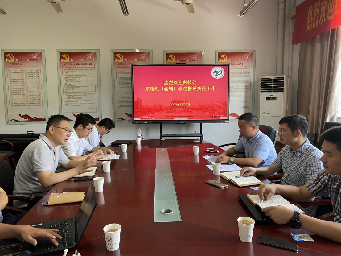 余厚咏副院长介绍了学院纺织特色科研工作及发展前景,同时希望科技处、先进技术研究院多指导学院科研工作,充分对接国之重器的战略需求,推进学院科研工作再上新台阶。