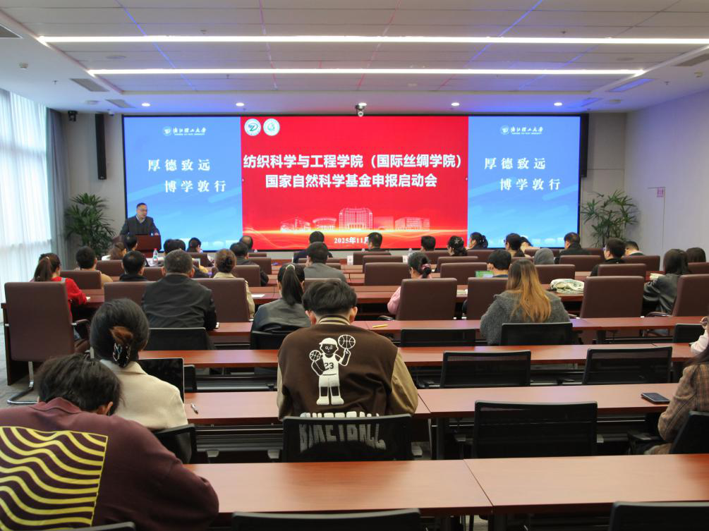 在“尚+”主楼310会议室组织召开2026年国家自然科学基金申报启动会。会议特邀浙江大学化学工程与生物工程学院潘鹏举教授、浙江理工大学化学与化工学院马慧教授两位专家作专题辅导报告。校科技处处长俞峰,纺织学院(丝绸学院)院长于斌、副院长吕汪洋、学术副院长朱斐超、宋凯利,科技处基金项目主管周艺艺,有关国家自然科学基金申报教师70余人参加了会议。会议由麻豆