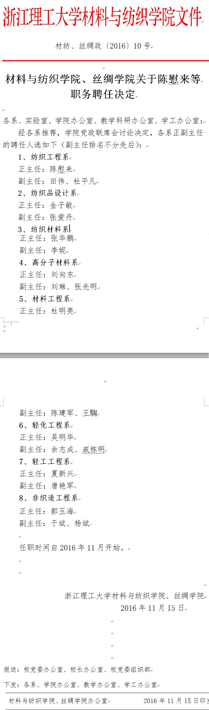 材料与纺织学院、丝绸学院关于陈慰来等职务聘任决定