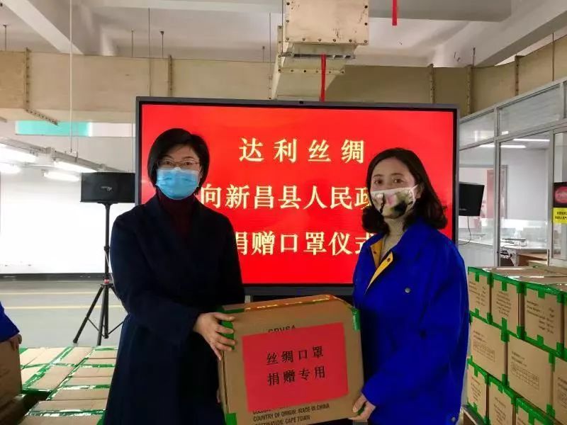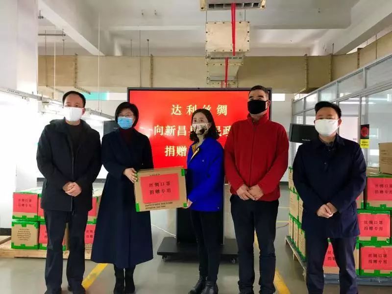 1月30日,达利丝绸(浙江)有限公司向新昌县人民政府捐赠10000只丝绸口罩,将由新昌县统一调配发放。