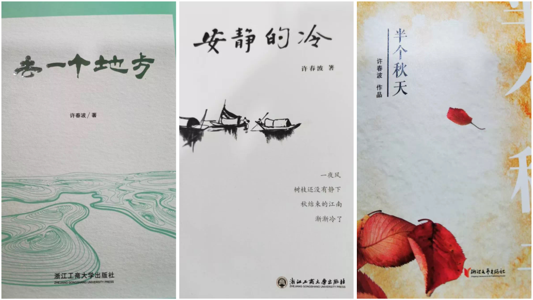 许春波就读于浙江丝绸工学院(浙江理工大学前称)丝绸工程专业,是什么契机使他走上了一条与专业似乎毫无关联的道路呢?这源于许春波从小就对文学有着浓厚的兴趣,许春波的诗歌创作最早可以追溯到初中一年级,他中学时期就喜欢写作,写作能力突出,作文信手拈来,经常得高分。进入大学不久,他参加了大学新生征文比赛,参赛的两篇文章分别获得了一等奖和三等奖,这使他对写作更加充满了信心,也越来越热爱文学。大学作为一个更加广阔的平台,提供了更多的资源与机遇,可支配于兴趣爱好的时间也更多了,许春波进入大学以后一直在利用课余时间学习、阅读文学作品,提高自身文学素养,充满灵思。后来他加入了学校的SSS文学社,与爱好文学的老师、同学们交流分享读书写作心得,并且留任成为了文学社社长,在文学社的学习和工作中,许春波发现他所热爱的同时也是他所擅长的,他负责编辑了几期诗歌和散文方面的刊物,都得到了印刷和发行,获得了自我价值的肯定。这些经历使许春波在校园时期积累了丰富的写作经验,在文学创作上大受鼓舞,坚定了他继续自己文学之路的信念。