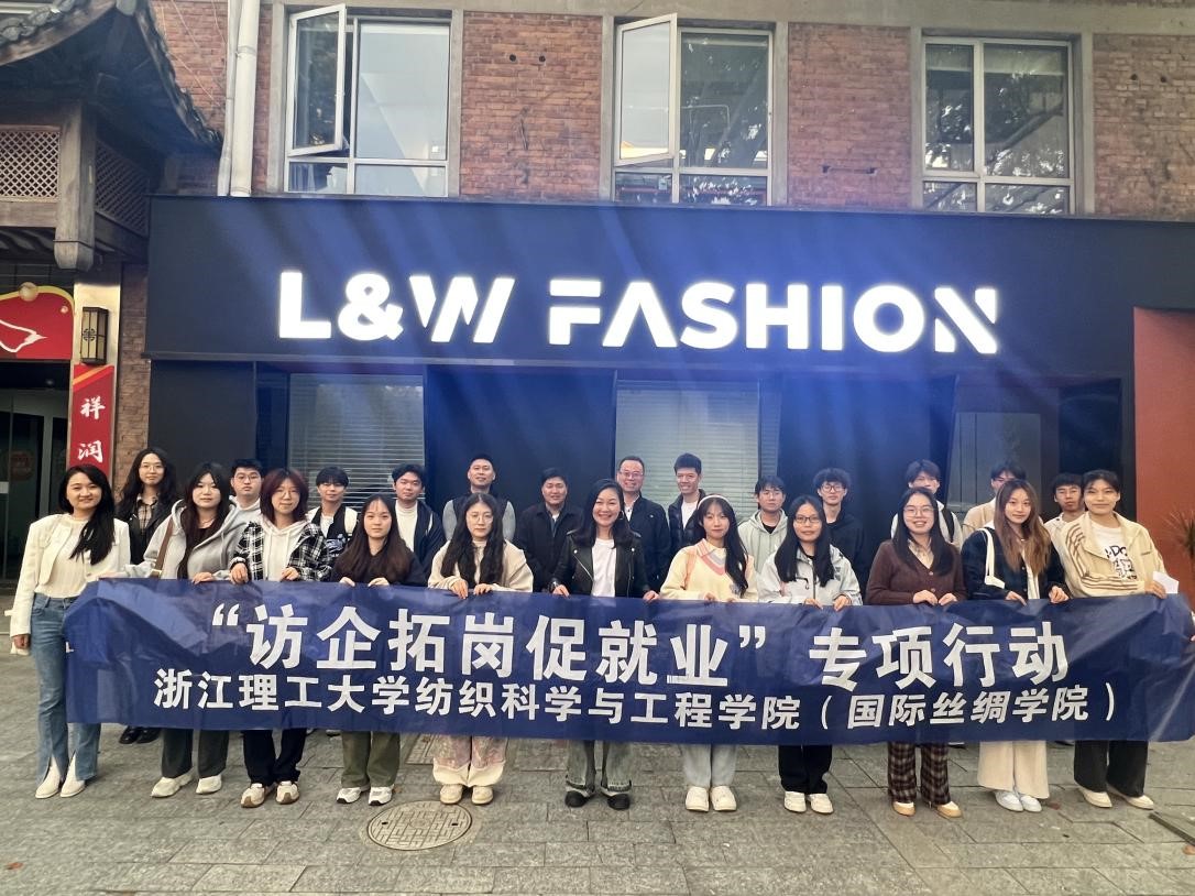 党委副书记方平携纺织工程系专任教师、本科就业辅导员、应届毕业生及大三学生20余人走访校友“杭州利维服饰有限公司(以下简称利维服饰)”,开展访企拓岗和调研交流活动。01级校友、杭州利维服饰有限公司L&W FASHION LIMITED总经理翁娜清、01级校友、杭州纯享丝道旅游文化发展有限公司公司总经理何纯建及03级校友、杭州丰印数码纺织技术有限公司总经理林乃苗热情接待师生一行。