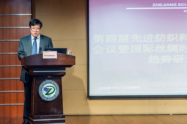 10月13日-14日,由浙江理工大学和国际丝绸联盟联合主办,浙江理工大学材料与纺织学院、丝绸学院承办,浙江米奥兰特商务会展股份有限公司协办的第四届先进纺织科学及技术国际学术会议暨国际丝绸时尚设计与发展趋势研讨会(4th International Symposium on Advanced Textile Science and Technology & the International Seminar on Silk Fashion Design and Development Trend)在我校隆重举行。开幕式由材料与纺织学院、丝绸学院党委书记兼副院长祝成炎教授主持。