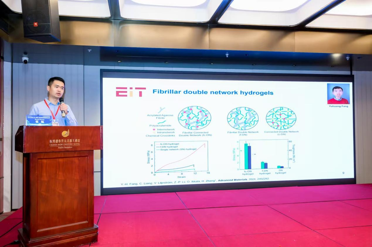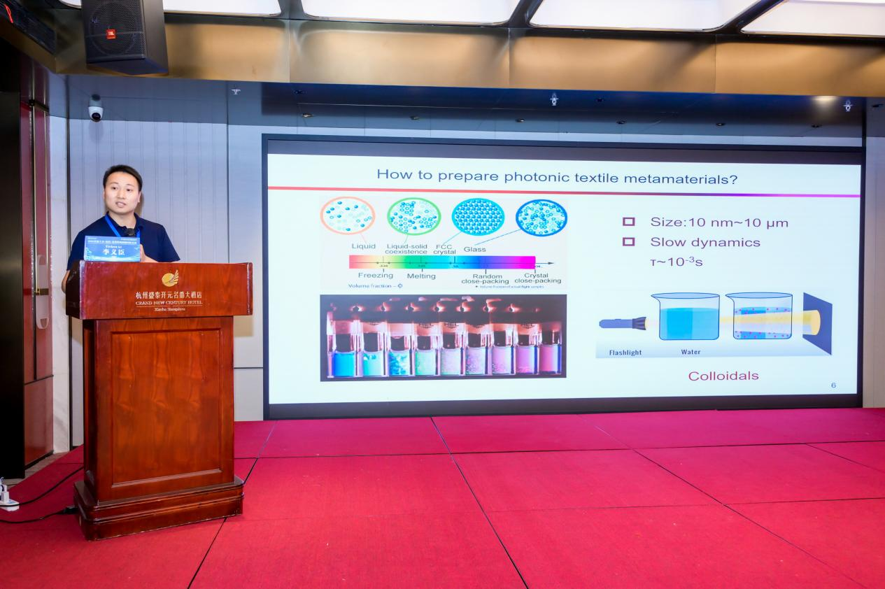 在会议报告环节,来自中国、巴基斯坦、英国、日本等国家的学者,围绕“功能纺织品制备与前沿应用”、“自供电纺织传感器设计与制备”、“蛋白质纤维加工与应用”、“可生物降解非织造材料加工”、“水凝胶制备及应用”、“电磁屏蔽用柔性纤维研究进展”、“运动用功能纺织材料制备”、“液晶光子晶体在纺织中的应用”等议题,分享了最新研究成果。现场学术氛围浓厚,研究生们踊跃提问,互动积极。