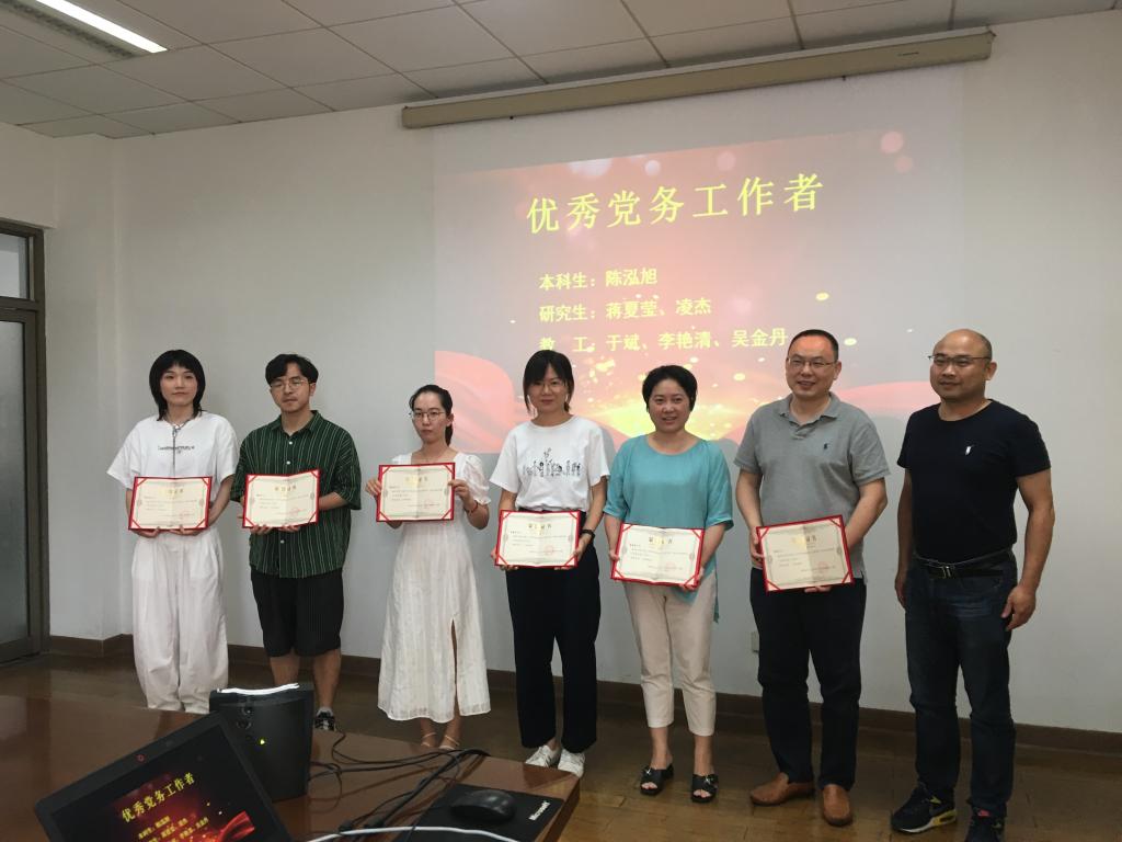 此次表彰大会,学院党委对15名共产党员、6名党务工作者和5个基层党组织进行了表彰。与会领导为获奖代表颁发了荣誉证书并合影留念。