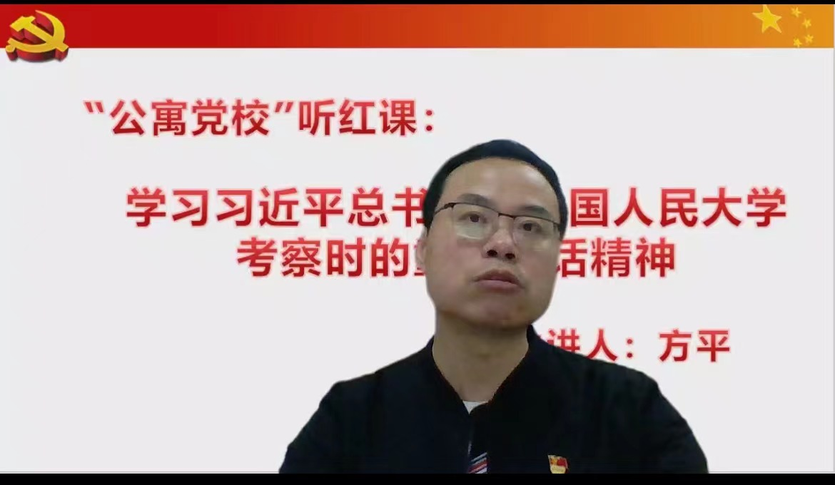 党委副书记方平走进浙江理工大学嵩阳苑生活区10栋116的“周一夜学党校”,为线上与线下的学子们讲授了一场内容与形式兼具、主题和主线并行的微党课。