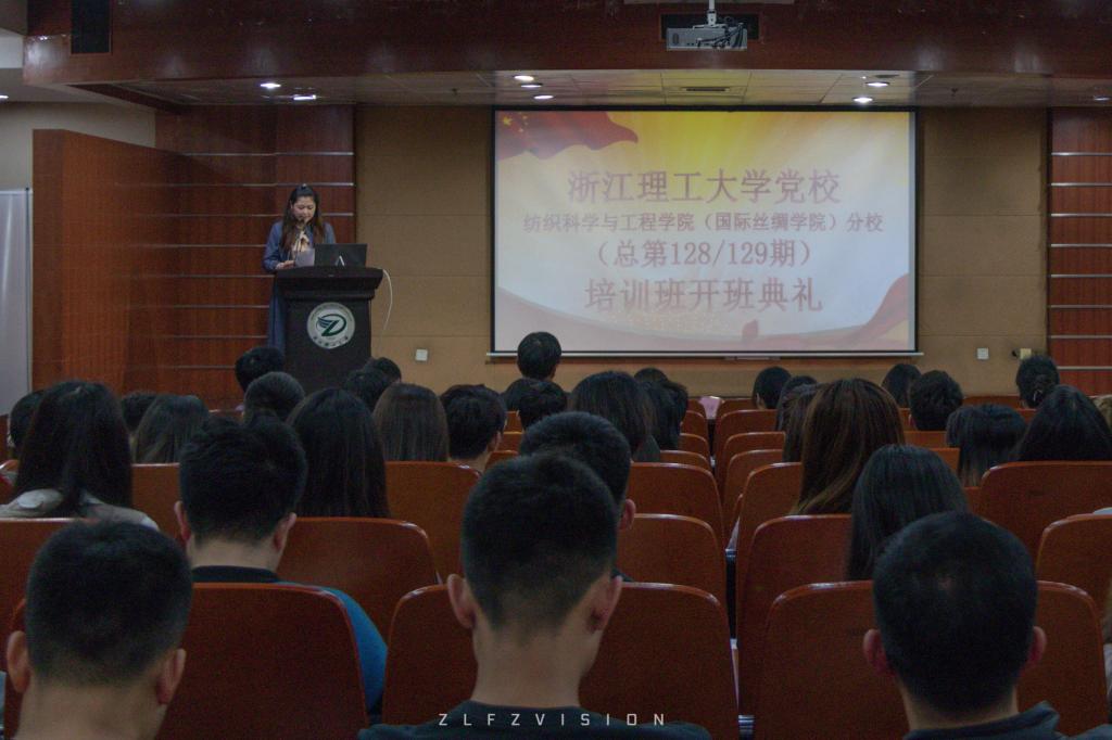 在大剧院三楼报告厅举行了浙江理工大学党校纺织科学与工程学院(国际丝绸学院)分校(总第128/129期)培训班开班典礼。院党委书记徐伟强作为本次党课主讲人,100多名入党积极分子与预备党员参与。本次活动由院组织员朱佳琳老师主持。