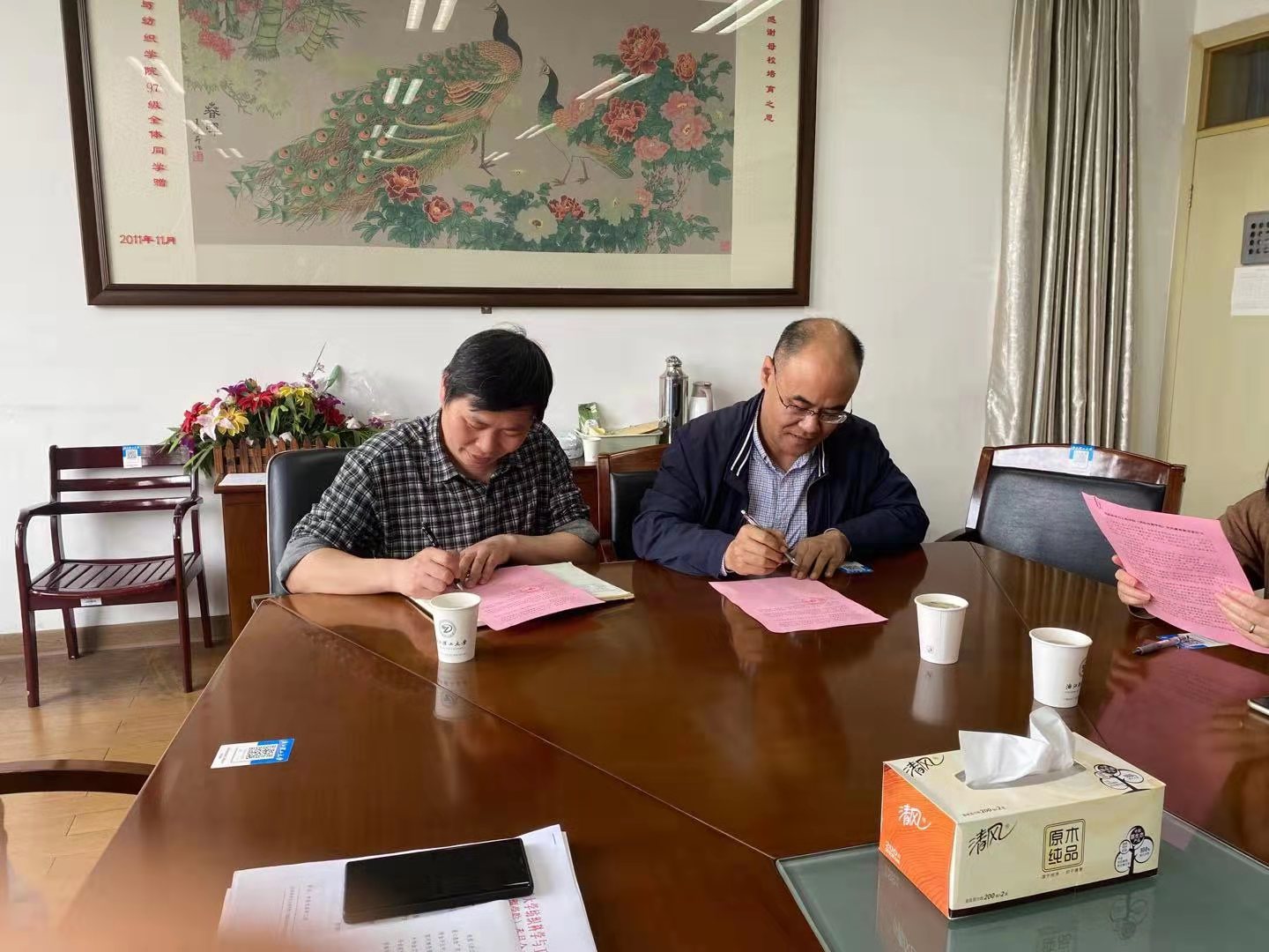 徐伟强分别与各系签订了党风廉政责任书,并强调各系主任要做好传声筒、拿好接力棒,层层压实责任,确保党风廉政建设扎实有效。