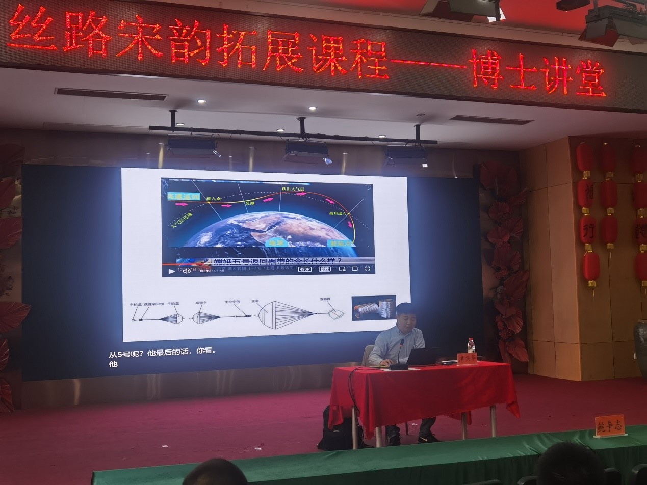 首先他向同学们介绍中国是蚕桑文化的起源地,栽桑养蚕制丝织绸是“中国最具特色的科技和文化形态”。接着,他阐明传统意义上丝绸多是用于服饰、艺术等领域,而现代丝绸有非常多的黑科技,比如应用于航空航天,降落伞,人造树叶,回收材料环保,蚕丝芯片,医疗,3D生物打印技术等不同领域。随后,他向现场同学展示了丝绸与回收材料、反光材料、可植入人体材料、蚕丝芯片等跨界应用。最后,他还给同学们提出了一些思考:丝绸还有哪些其他应用?丝绸还能做成什么产品?