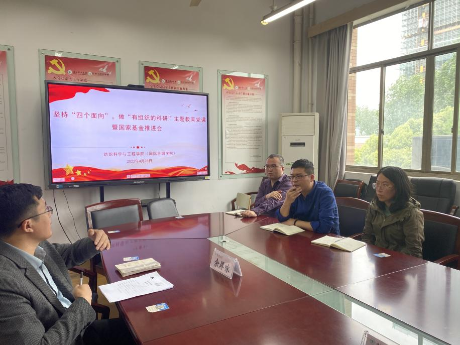 4月28日,副院长余厚咏以“坚持‘四个面向’,做‘有组织的科研’”为主题,宣讲专题党课。他指出,主题教育是激发青年教师特别是党员教师“表决心、出成绩、建新功”的良好契机,要充分把握其中意义,积极参与其中,特别是要围绕国家推进科技事业发展“四个面向”指导思想,关注纺织科技前沿、社会实际需求、学院学科发展,注重提升、注重创新,形成突破。在分析各个环节因素的基础上,他鼓励年青老师趁势国家基金项目申报契机,夯实研究基础,凝练研究方向,提升研究能力。同时表示,学院将组织力量,强化统筹规划,加强培育工作,畅通科研信息,搭建研究平台,努力做好有组织的科研管理和服务工作。