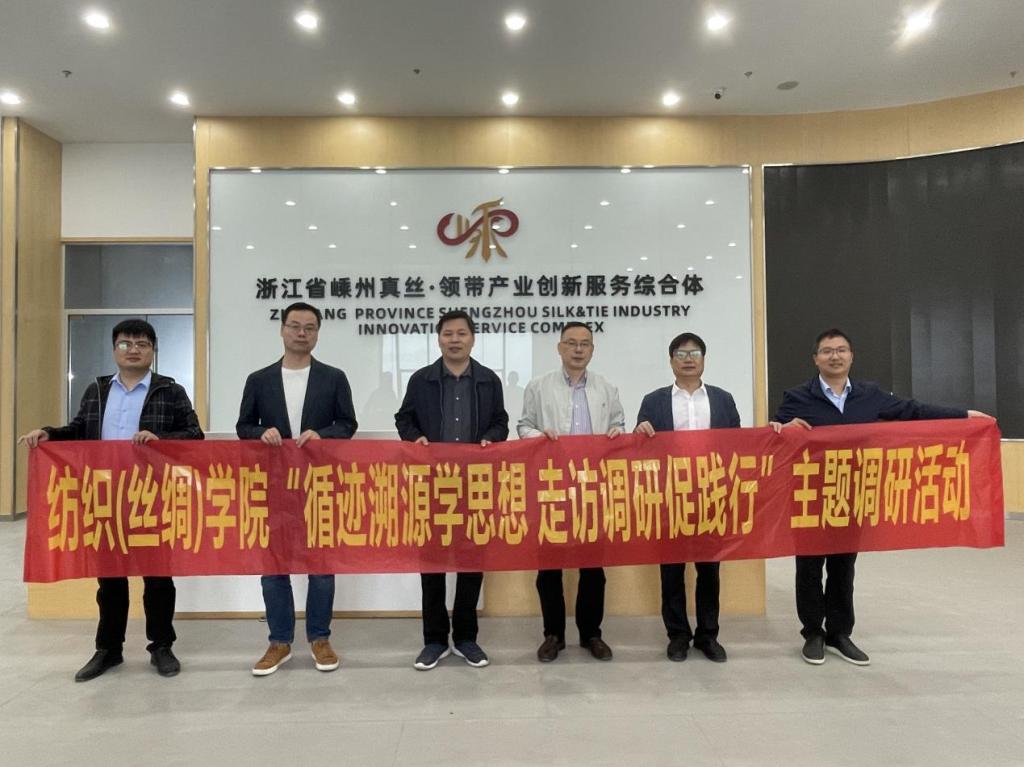 在嵊州知名纺织企业麦地郎纺织有限公司,调研人员深入产品展示馆,并与企业总经理袁学军、嵊州领带协会秘书长钱丰以及浙江理工大学嵊州创新研究院副院长付飞亚、综合办副主任竺帅彬进行座谈交流,听取各方对“如何进一步强化校企之间的需求,如何校企联动破解人才匮乏这一‘急难愁盼’问题,如何发挥嵊州研究院的多重功能”的意见和建议。双方分析校企合作现状,罗列问题清单并进行逐一破题,分别就校企科技合作、优势成果转化、创新人才引培达成了初步意向。