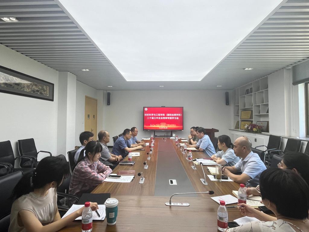学院领导班子成员分别结合工作实际、学习贯彻党的二十届三中全会精神作交流发言 。院长于斌表示,高校是教育、科技、人才的重要聚集地,是国家创新体系中的极其重要一环。聚焦和落脚到纺织学科建设和发展,必须坚持党的领导,结合国家重大战略,加强顶层设计,建成全国乃至世界重要纺织科技人才中心和创新高地,助力浙江省中国特色社会主义共同富裕示范区和省域现代化先行示范区建设,加快实现纺织强国。党委副书记、纪委书记方平表示,全会围绕全面深化改革、推进中国式现代化,提出要统筹推进教育科技人才体制机制一体改革,这就要求要深化构建纺织学科传播体系,持续讲好学科故事;坚持科技是第一生产力,引领学科交叉融合,推动产出更多科技创新成果;增强人才培养协同性,进一步加强校企合作,打造以项目为牵引、以解决实际科技需求为驱动的实践培养体系,通过双向赋能实现合作共赢。副院长吕汪洋表示,教育、科技、人才是中国式现代化的基础性、战略性支撑,要更加主动对接企业需求,注重原创技术的研发,敢于突破,勇于创新,不断推进产业智能化、高端化和绿色化发展;同时要进一步探索统筹推进教育科技人才体制机制一体改革的有效路径,增强人才培养对产业发展的适配性,推动产教融合,培养更多纺织行业高素质创新人才。